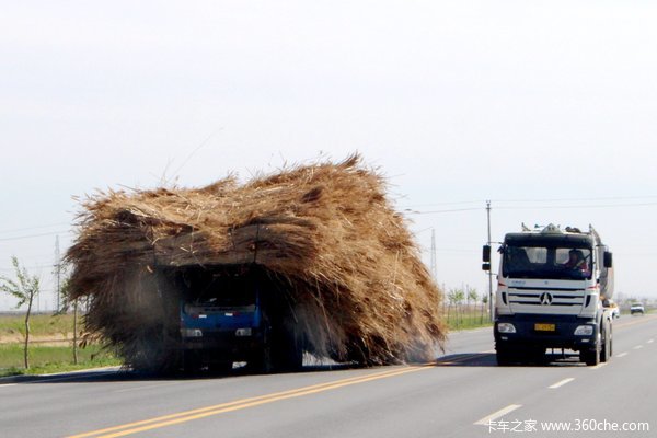看见这个车,估计这路上没有交警和路政。否则这一车芦苇还不够交罚款。