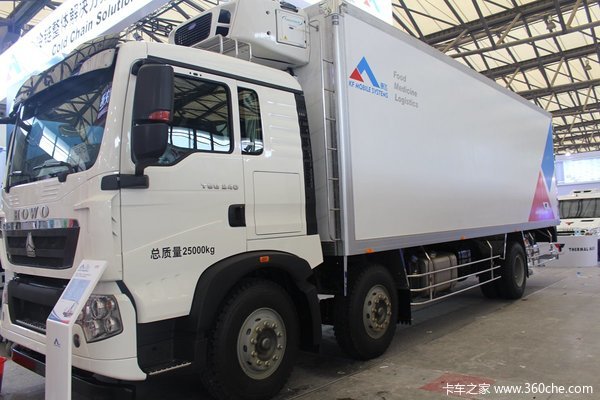 据厂家技术人员介绍,这款冷藏车所用的底盘是重汽推出的冷藏车专用底盘,采用6X2双导向设计,发动机是曼技术MC07.24-50,最大功率240马力,国五排放标准。