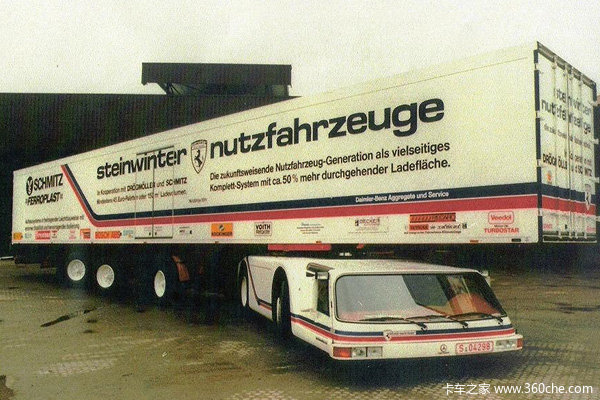 Steinwinter是一家开发菲亚特改装配件和组装汽车的小公司,和奔驰总部一样位于德国的斯图加特,厂家车标“山寨”了一把法拉利的跃马图案,而实际上他们跟法拉利没有半毛钱关系。在1983年的法兰克福国际车展上,他们就提出了这辆概念性的牵引车,一个全新的运输想法。
