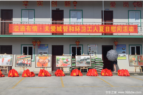 在凤凰山街道凤翔市政公司活动现场,工作人员给环卫工人和城管队员送上绿豆、苦瓜片、菊花茶、风油精、藿香正气水等防暑降温食品和用品。