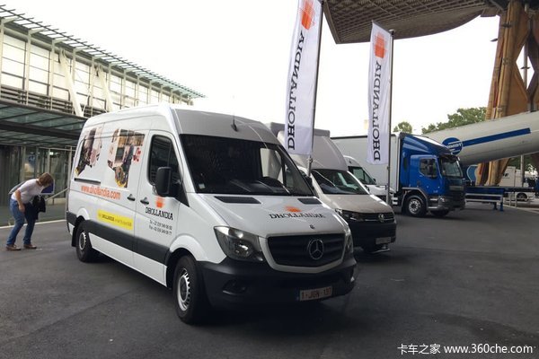 【卡车之家 原创】在2016年汉诺威国际商用车展期间,我们的前方记者在展馆外面发现了几款造型比较独特的车辆。其中有两款奔驰的VAN车型,在正面看与一般的VAN车型没有差别,不过走到后面看,你会发现这两款车的与众不同。