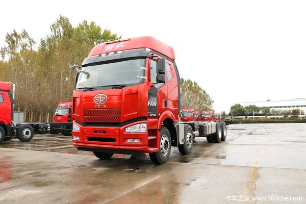 【卡车之家 原创】随着9.21治超的开展,国内的长途车辆基本以标载运输为主。总重31吨的限重对8X4有着不小的打击,虽然总重减少9吨,但是运输市场依然对8X4载货车有着不小的运输需求,例如在绿通领域,穿梭在田间地头出入市场,8X4载货车的地位是其他车辆代替不了的。近日,一汽解放为用户打造了一款绿通版8X4载货车底盘,下面我们一起来了解下。