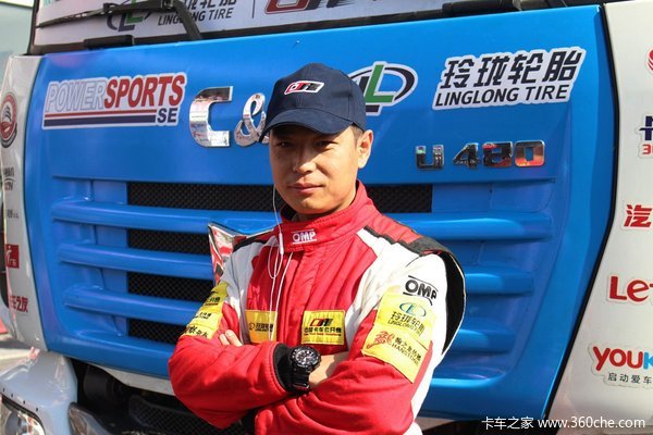 在广州站曾出现过一次意外,包括在上午第一轮比赛的时候,水箱就被前车车轮带飞的石子砸坏,而他的团队在很短的时间内把这个问题给修复了,让我能够很好的参加第二回合的比赛,并获得胜利,所以联合卡车以及联合卡车的团队是非常专业的,也是非常非常的棒的团队。今天取得这样一个好的成绩,不单单是自己的发挥出色,也要感谢联合卡车,感谢整个技术团队的支持。