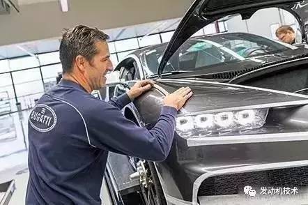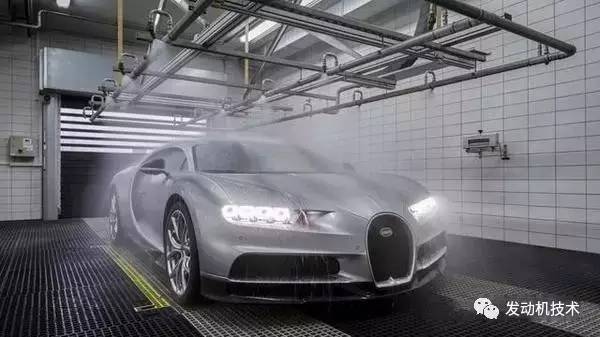 揭下保护膜、清洗、Monsun室中进行防水测试、再次清洗、抛光以及长达6小时的质量检测。最后总裁会亲自检查,只有布加迪总裁Christophe Piochon说OK,Chiron才可离开车间。