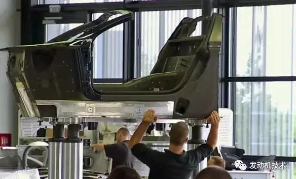 在第一个平台,工程师为组装准备好动力传动系,然后在第二个平台将其安装到车辆的底盘上。汽车底盘则需要三名工人花一个周的时间组装起来。