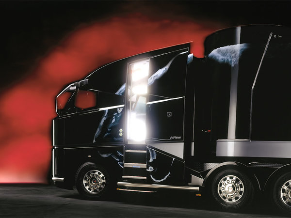 车身具有良好的空气动力学,内部分有工作区和房车般的客厅,动力来自460马力12.8升发动机,搭配自动变速器。