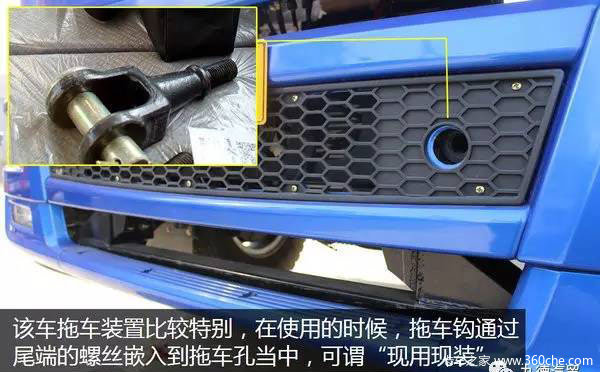 与大家常见的拖车钩不同,该车拖车装置比较特别,在使用的时候,拖车钩通过尾端的螺丝嵌入到拖车孔当中,可谓“现用现装”。另外,这种结构在拖车时更加可靠,避免出现托车绳在松弛的时候容易滑脱的问题。