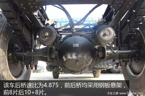 该车后桥速比为4.875,前后桥均采用钢板悬架,前8片后10+8片。