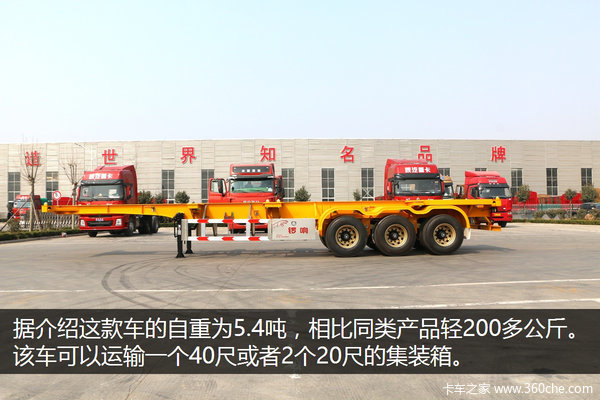 据介绍这款车的自重仅有5.3吨,相比同类产品轻300多公斤。该车采用直梁结构,配备12把锁具,可以运输一个40尺或者2个20尺的集装箱。除了自重方面的优势,这款集装箱骨架车的亮点很多,一辆挂车的好坏,更多的是看要细节上的做工,主要体现在设计、焊接、线路布局等方面,所以下面我们将在生产工艺、轻量化设计方面着重介绍这款挂车。