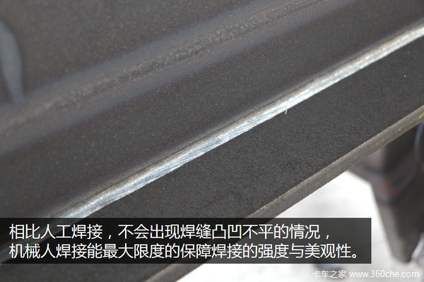 挂车的质量好坏,焊接工艺至关重要,这款车的大梁焊接平滑均匀,说明焊接工艺不错。这款骨架车采用的是机械人焊接,锣响是首家采用机械人焊接的挂车厂家,相比人工焊接,不会出现焊缝凸凹不平的情况,机械人焊接能最大限度的保障焊接的强度与美观性。与此同时,机械人焊接还大大缩短了整车的焊接时间,提升生产效率。