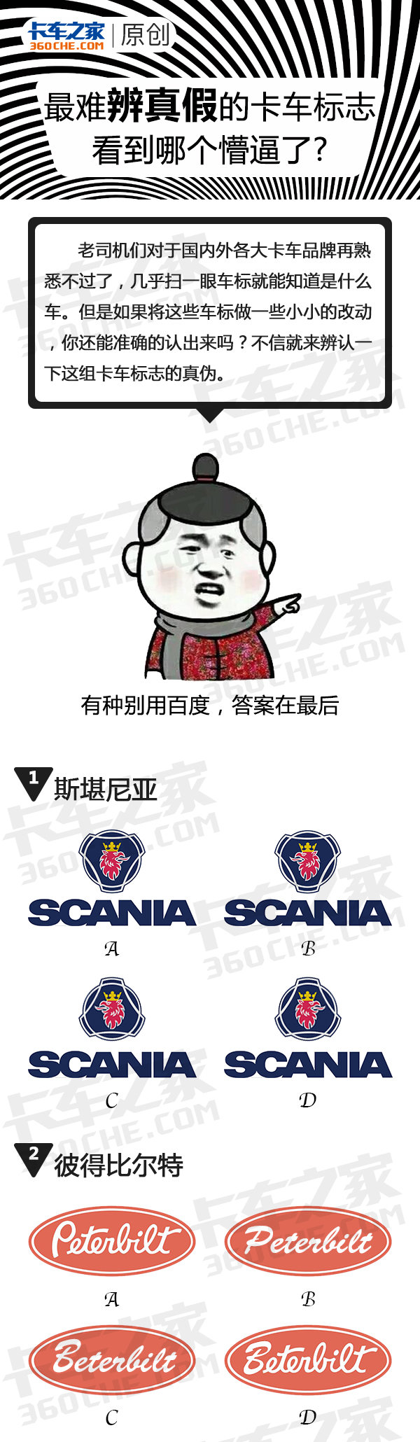 老司机,是一个神圣的头衔。这是一类最接近神的凡人,拥有娴熟的驾驶技术,丝滑的穿梭技巧,还有能让职业车手都汗颜的神龙摆尾的绝技。或许,小车的车标,老司机早已不屑一顾,但是面对人为的“错综复杂、滥竽充数”的国内外各大卡车品牌车标,还有你还能分的清吗?别说话,用心感受。