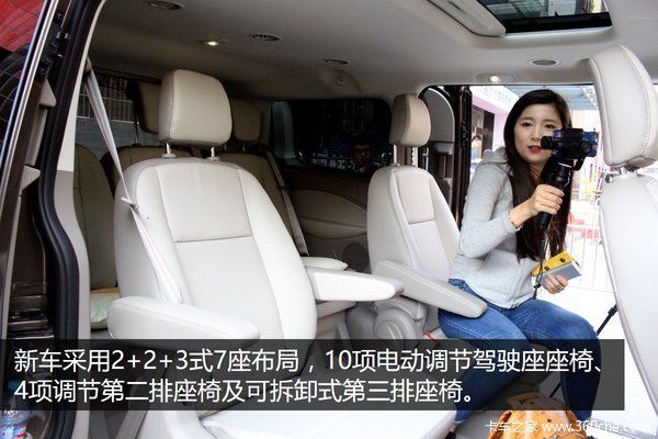 空间方面,新车采用2+2+3式7座布局,10项电动调节驾驶座座椅、4项调节第二排座椅及可拆卸式第三排座椅。