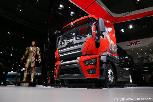 【卡车之家 原创】2017上海车展两天的媒体日已经结束,如果你问我现场哪台卡车造型最帅,我肯定毫不犹豫地向你推荐这台车——江铃威龙4×2钢铁侠版牵引车。