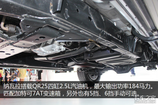 动力方面,该车搭载型号为QR25的2.5L四缸汽油机,最大输出功率184马力。与之相匹配的是加特可7AT变速箱,这也是国内唯一采用原装进口7AT的皮卡车型。此外,用户可以根据自身需求,选择5挡、6挡变速箱,手动、自动、手自一体都可以自行选择。