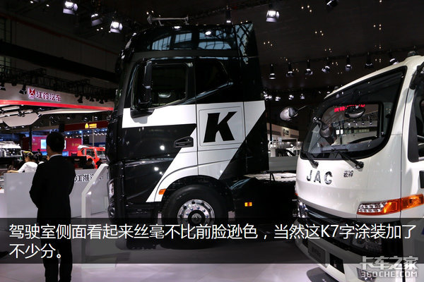 格尔法K7是江淮精心打造的一款高端重卡产品,凭借高颜值的外观、豪华的内饰以及可靠的动力系统相信能俘获不少人的心,强大的底盘配置能提供很好的运输保障,这样的一款车你们心动了吗?(文/黄俊 图/李鹏飞)