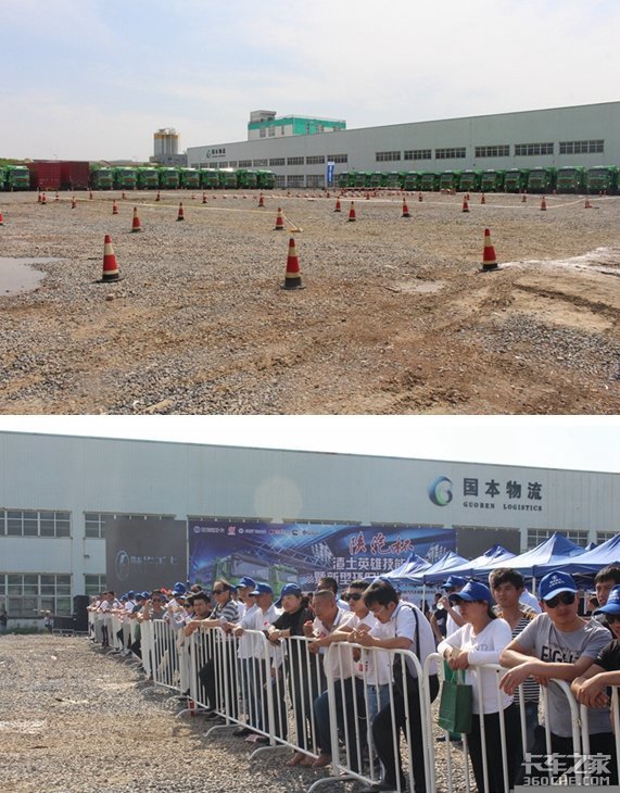 简单来说,就是9辆车依次上场,每位赛手驾车绕赛道两圈。车子进场后,先在装卸区模拟装点卸点、篷布闭合、大厢举升,完成后开始跑第一圈,并要求赛手限速在60Km/h。接着第二圈在倒库区按照场地规划进行倒库,最后戳破工作人员手中举起的气球,完成用时越少,成绩越好!