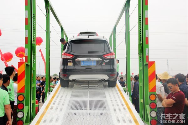 装载数量可能是客户目前最看重的特点了,除开传统的超标车辆不说,对比合法的半挂6位商品运输车,中置轴的装置数量优势毋庸置疑,而联合卡车中置轴轿运车8-10台的装载更是领先于行业的其他产品,在现场的模拟装载中,联合卡车中置轴轿运车轻松的装下了8台中大型SUV,而且车顶还能再装一台小型车,如此看来装下10台中小型车辆应该非常轻松。