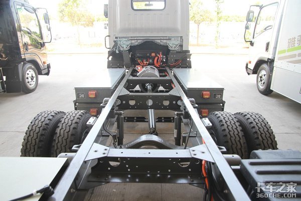 关于雅骏纯电动轻卡的二代产品,应该是国内首例框架式结构底盘的纯电动轻卡以外,电机的安装方式应该也是目前的一大创新。