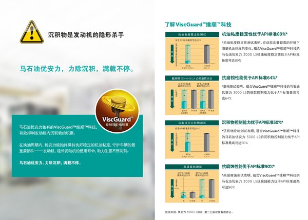 这7款机油产品均具备马石油优安力独有的ViscGuard 维顺科技,能够在换油周期内保持良好的机油粘度、抗磨损性、沉积物控制能力、抗腐蚀性能,帮助抑制发动机内沉积物的积聚,延长发动机的使用寿命。