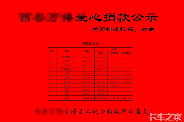 还好,人间有真情。郭志龙所在的西安万博工贸有限公司在得知这一情况之后,公司从上到下组织人员进行爱心捐助活动,总共募集捐款29560元。