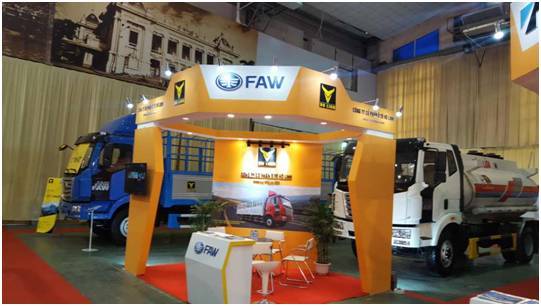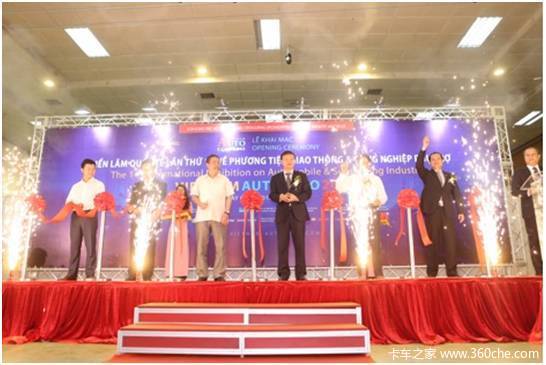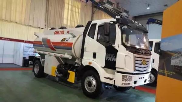 博览会现场,越南武灵汽车公司采用中国一汽解放金陆底盘与日本品牌—Tadano随车吊上装强强组合而成的金陆随车吊,成为行业领先产品,与同场展出的金陆底盘仓栅车、油罐车一起,吸引了众人眼球。