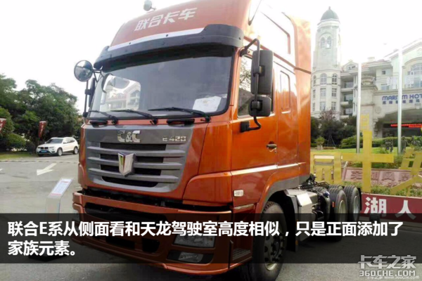 从我们得到的照片不难发现,联合E系列的驾驶室和东风天龙高度相似。