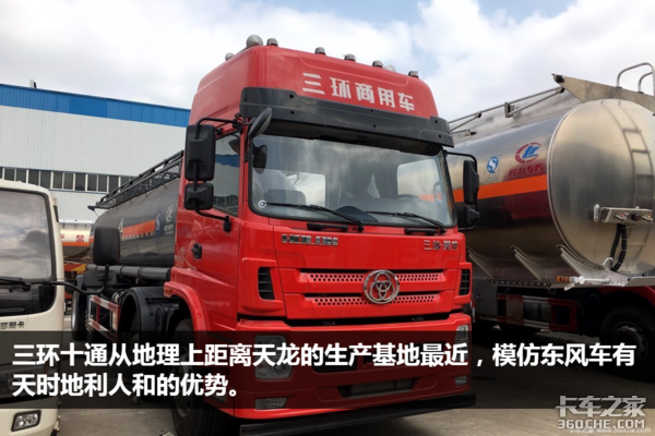 由于各种原因,全国各地东风车的模仿秀最多。以前是模仿老款153和紫罗兰驾驶室。现在同行们开始进化到模仿天龙。据不完全统计,这些车型有:三环十通、重汽斯太尔、天洋重卡等等。