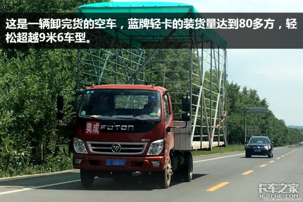 一般人心目中的蓝牌轻卡都是4米2车型,然而,在有些地方,蓝牌车已经能装到超过普通9米6车型的方量。