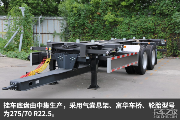 货厢和挂车是中集的产品,气囊悬架、富华车桥、轮胎型号为275/70 R22.5。前后货厢长度均为7.8米。而货厢和挂车,其实才是这台车最精髓的部件。