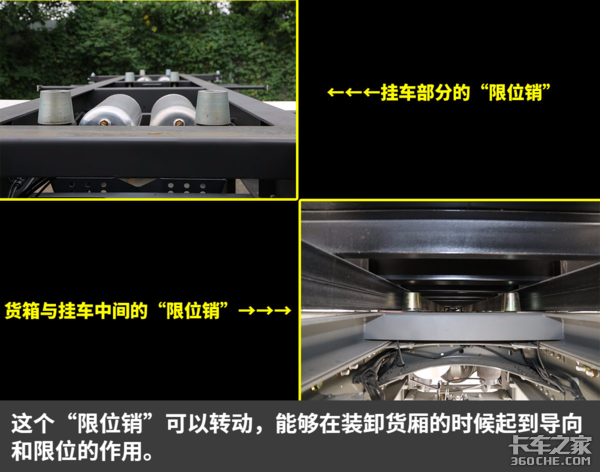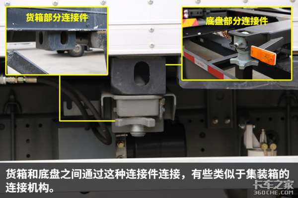 比如说要拆下货厢,那么就将支腿放下,打开锁扣,通过气囊悬架降低底盘高度,把车开走。装货厢反过来就可以了。