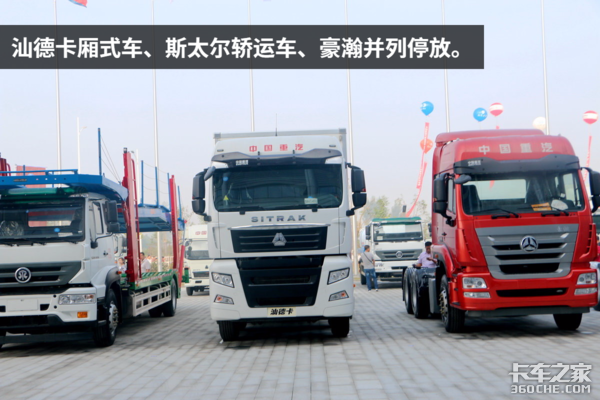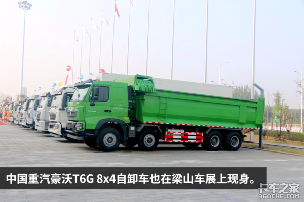 中国重汽也携旗下多款主力车型亮相梁山车展,除了我们最熟悉的T7H,还有T6G自卸车、T5G厢式物流车、汕德卡C7H 8x4厢式车、斯太尔轿运车、豪瀚等诸多车型。
