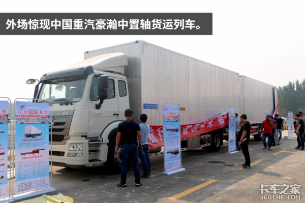 除此之外,在山东三星集团明航物流装备的展台上,还有一台上装铝合金封闭车厢的中国重汽豪瀚中置轴列车,这辆豪瀚总长达到了20米左右,车厢容积达到110立方,该车采用全气囊悬架,挂车采用中置双轴单胎设计。