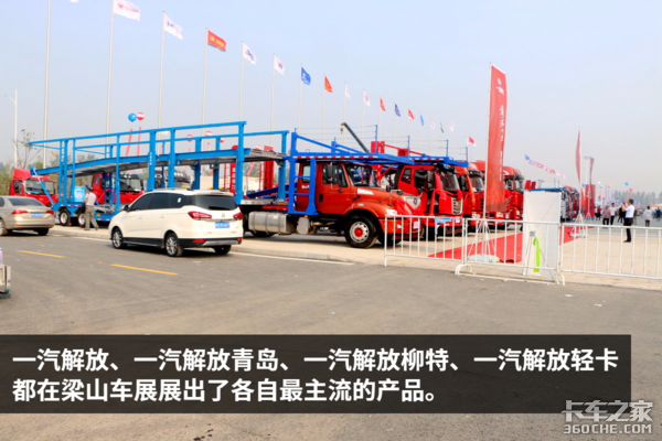 【卡车之家 原创】虽说一年一度的梁山专用车展是国内各大专用车和挂车的盛会,但是这些专用车和挂车都离不开主机厂的卡车底盘和牵引头,所以在今年举办的第十三届中国(梁山)专用车展上,一汽、重汽、福田等厂家都来参展,一些车企虽然没来,但是借改装厂的光,让自己的主力车型也在车展上亮相。