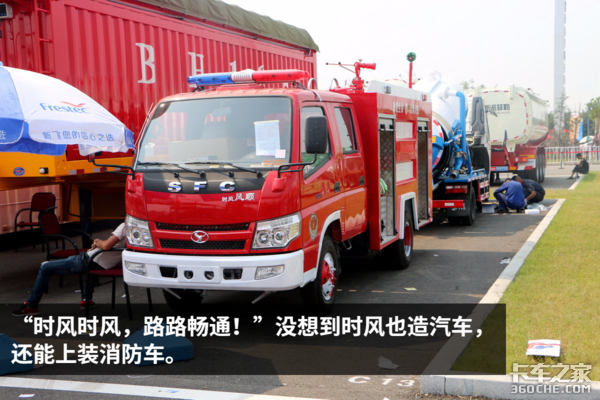 除了以上展车,在展馆的外围还有一些运送物料和提供展会服务的轻卡、重卡以及封闭厢式车。