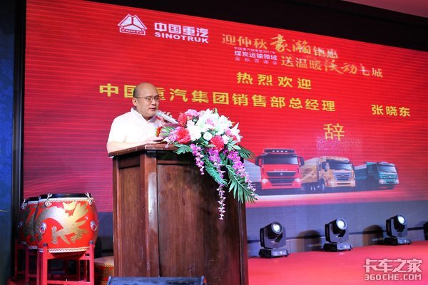 2017年9月23日,以“迎仲秋豪瀚钜惠 送温暖沃动七城”为主题的中国重汽销售部2017年煤炭运输领域金秋答谢会在焦作召开,中国重汽集团销售部总经理张晓东,中国重汽集团销售部河南分公司赵青总经理和河南时代天成汽车销售有限公司董事长李静等人参加会议。