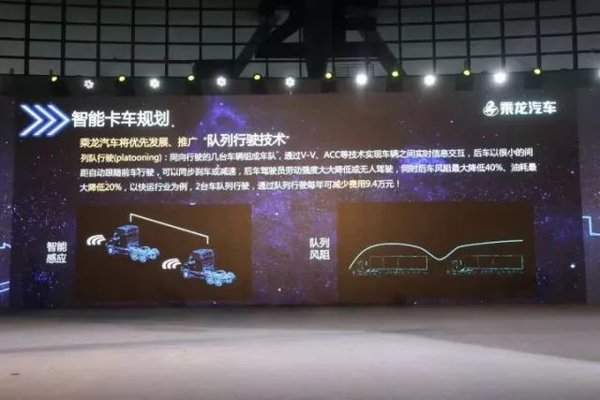 近年来,随着互联网、大数据、自我学习概念的盛行,智能已成为国内外汽车技术发展的焦点命题。对于卡车行业而言,人工成本和驾乘安全始终是一大难题,而智能卡车将有效缓解卡车司机劳动强度、降低成本,提升驾驶安全和效率。因此,智能将是未来商用车发展的必然趋势。作为商用车行业的先行者,乘龙汽车以战略性眼光,抢先布局智能卡车市场。发布会现场,乘龙T7所展示的远程控制车辆技术,得到了客户的一致好评。乘龙汽车国内率先提出的卡车“阵列行驶”智能驾驶技术不仅能降低驾驶员劳动强度,而且将大幅降低油耗成本,乘龙汽车将优先在乘龙T7、乘龙H7上发展此项对提升客户价值有重大帮助的智能技术。