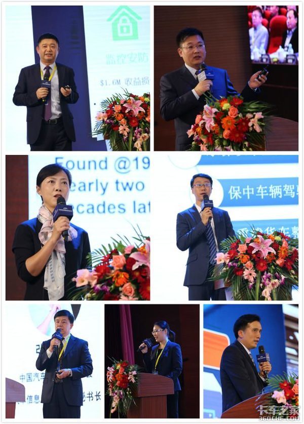 中国联合网络通信有限公司物联网业务部总经理陈晓天、中国重汽集团营销管理处处长杨中格、以色列Mobileye中国总经理苏淑萍、北京中交兴路车联网科技有限公司保险业务总监巩磊、中国汽车维修行业协会汽车信息工作委员会秘书长张学辉、国家交通运输物流公共信息平台管理中心区域及供应链互联部副主任孙单智、罗宾逊全球货运(上海)有限公司亚洲发展战略总监吕台欣、径卫视觉科技(上海)有限公司副总经理吴金山、中华联合财产保险股份有限公司车辆保险部处长黄福茂、物流宝兑通首席运营官王赫、运满满副总裁兼研究院院长徐强、中储南京智慧物流科技有限公司战略发展部总经理刘云飞、杭州鸿泉数字设备有限公司董事长何军强、福佑卡车联合创始人叶逸飞等嘉宾分别进行了精彩的主题演讲,对在新态势下货运企业该以何种方式去应对市场变化、在无车承运人及大数据时代下的实践与创新等问题进行了各自独到的见解。
