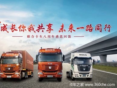 成长你我共享,未来一路同行!即日起自12月30日,联合卡车在全国范围内举行八周年感恩回馈庆典。线上线下同步进行,超级服务季重磅来袭,限量版高端车型等您“捡漏”,线上“红包雨”砸不停。同时,线下全国十座城市,将会举行感恩庆典现场品鉴会,最新服务和金融政策发布,多种游戏比赛等待“深藏不露”的你来参加,更有新款卡车亮相现场。猛料十足,不要着急,小编这就告诉你彩蛋在哪里。