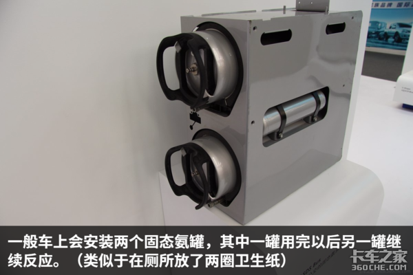 汽车后处理不再使用尿素溶液,而是更换成了固态氨。固态氨用完之后直接更换固态氨罐。一般车上会安装两罐,其中一罐用完以后另一罐继续反应。(类似于在厕所放了两圈卫生纸)