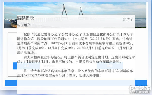 2、截至9月30日,全行业1.2万辆不合规车辆运输车退出市场,通过运管系统注销道路运输证或车辆恢复原状。