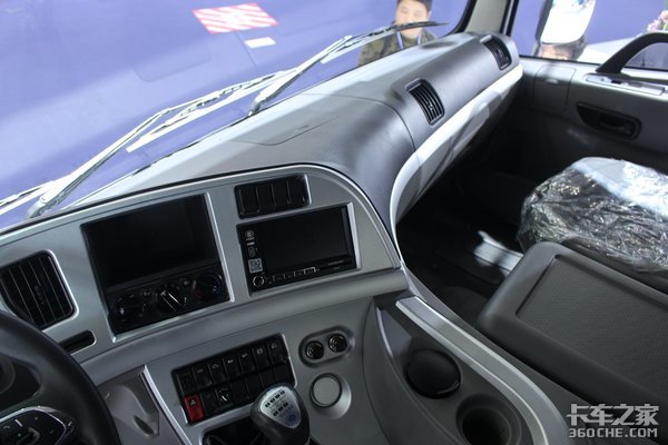 内饰上,平地板驾驶室给了卡友宽敞的活动空间,接近1米宽的卧铺也是给卡友提供了舒适的休息条件。