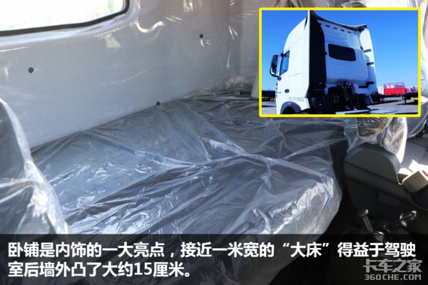 至于驾驶室,T7H有多种配置可选,这台车装配了T7H高位保险杠高顶驾驶室,对于以车为家的卡友来说,四点悬置气囊驾驶室是舒适的标配!