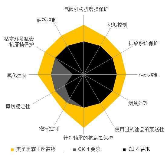 美孚黑霸王超高级15W-40先进的平衡配方使其具备更高的粘度指数,能为发动机提供更好的保护,而其低灰分配方能更好地兼容DPF后处理系统,为后处理系统减少负担。与CJ-4配方相比,美孚黑霸王超高级15W-40的抗磨损保护提升了20% ,高温粘度控制提升80% ,抗氧化性能提升50% ,能以完整油膜使紧凑的发动机零部件顺畅运转,帮助控制发动机磨损和烟炱的产生,同时帮助延长润滑油换油周期,节省维护工时,进而帮助整车和发动机制造商应对“国五”以及今后更严格的排放标准“无压力。