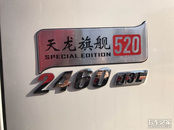 在车辆左侧的车门上,贴有镀铬标识,520代表的是马力,2460是发动机的扭矩,而13L则代表发动机的排量。