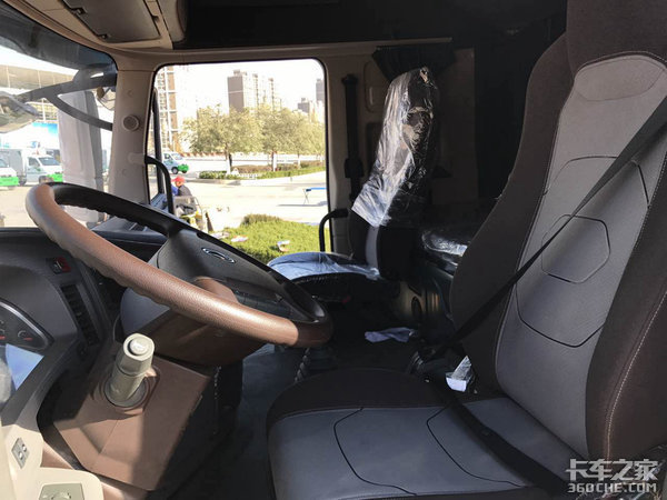驾驶室是这台车最受人关注地方之一,它给人的高级感也会比底盘更加明显。以座椅为例,除了高低、前后等超多项调节功能,司机可根据自己的使用习惯习惯进行调节。