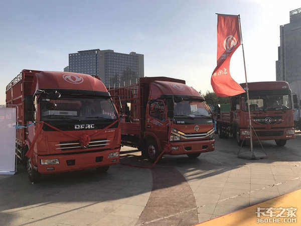 除新升级的天龙旗舰外,东风股份的4款载货车也来到了现场,包括2018款东风多利卡D6、多利卡D7两款轻卡,以及多利卡D9、D12两款中卡。