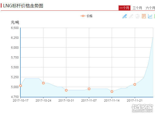 不只是加气站的零售价格上涨,就连期货大盘的价格也是一路飙升,目前均价已突破6250元/吨,而山东每吨LNG的价格在3天内就涨了1000元。