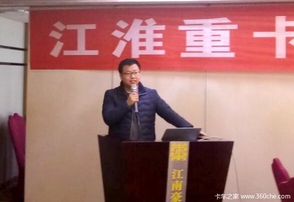 首先江淮大区销售经理黄淼对江淮格尔发目前的产品可靠性、安全性、舒适性、经济性做了详细的介绍,并取得在场用户的认可,更是突出6X4牵引配备锡柴奥威更是强强联手,将节油、可靠、舒适推上一定高峰。