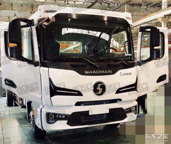 车辆的前脸确实跟还未上市的X6000重卡很像,依然使用SHACMAN的标识,以及左右两边标志性的扰流槽。透过玻璃看到驾驶室内只有2个座椅,以及侧面并没有玻璃开口,所以我们猜测车辆并没有卧铺。