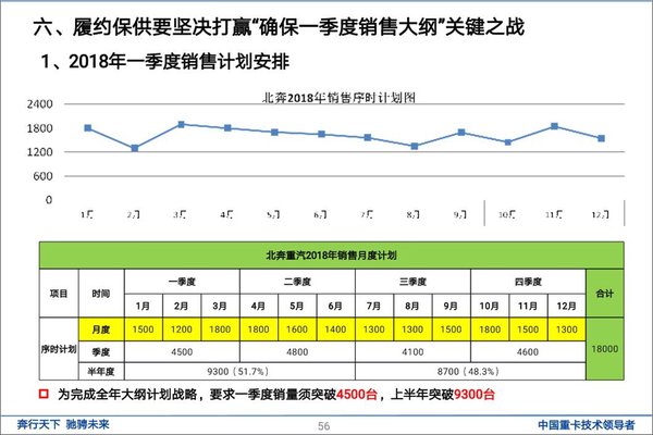 ▎北奔重汽2018年销售月度计划